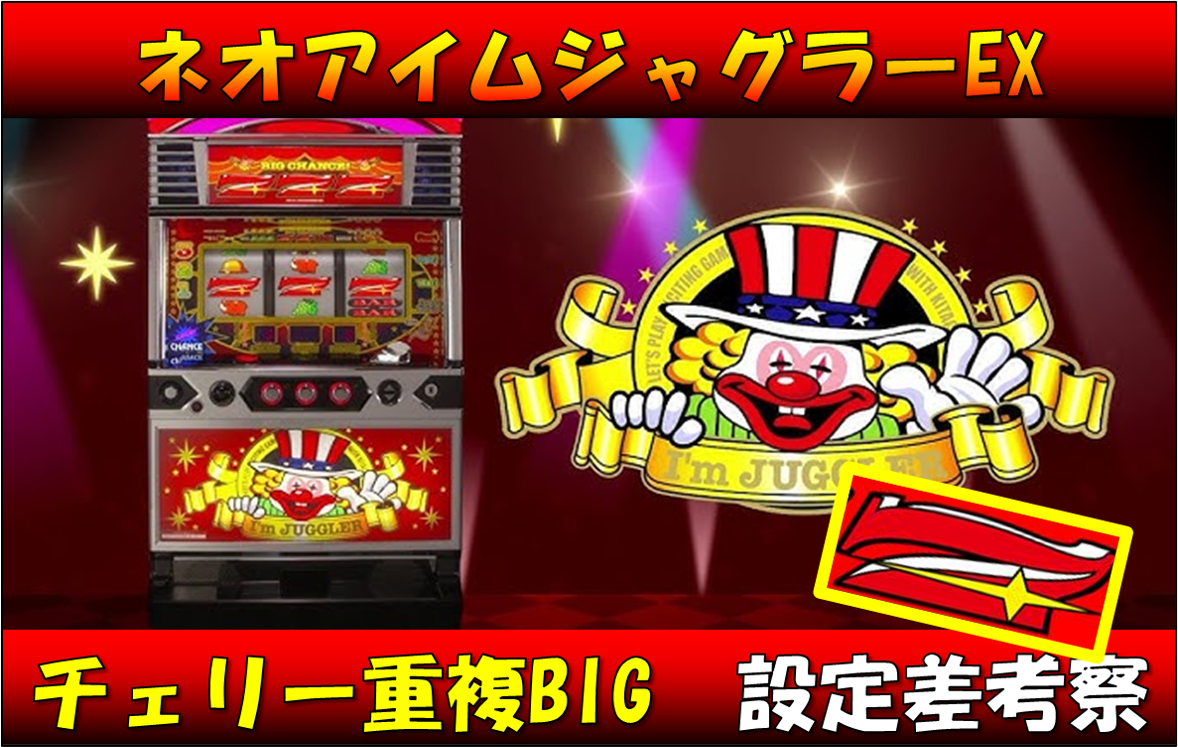 この記事はネオアイムジャグラーEXのチェリー重複ビッグを用いた設定判別について解説します。