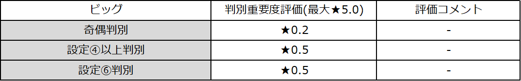 設定④以上判別、設定⑥判別いずれも★0.5ということで「-(評価なし)」という結果になりました。