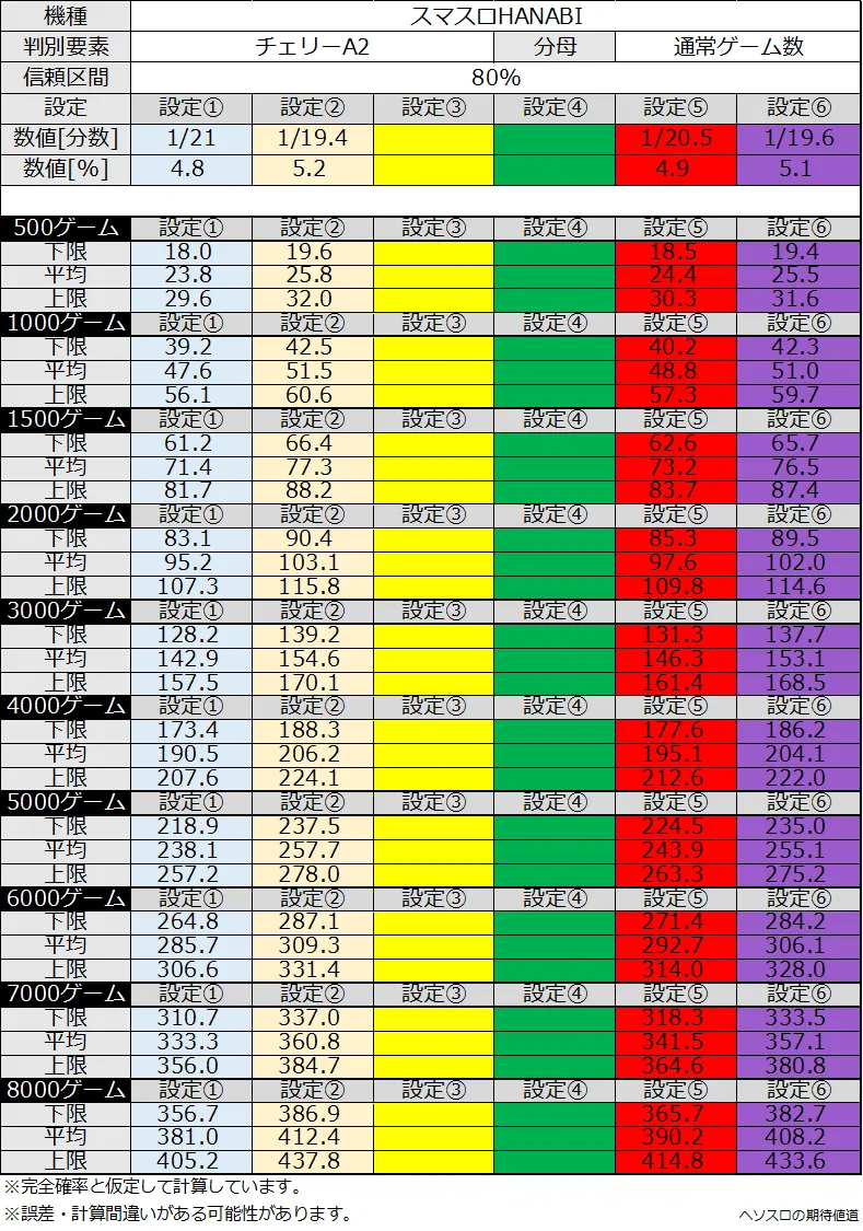 スマスロHANABIのチェリーA2の設定差がこちら。