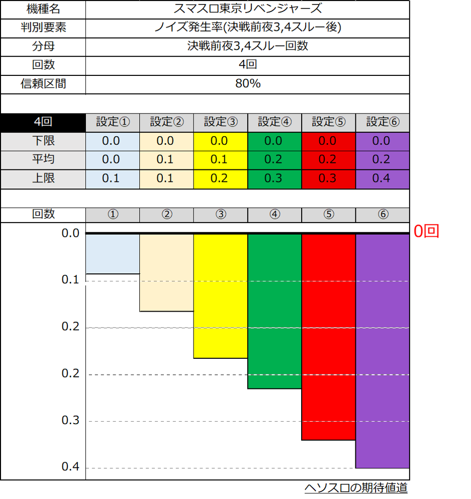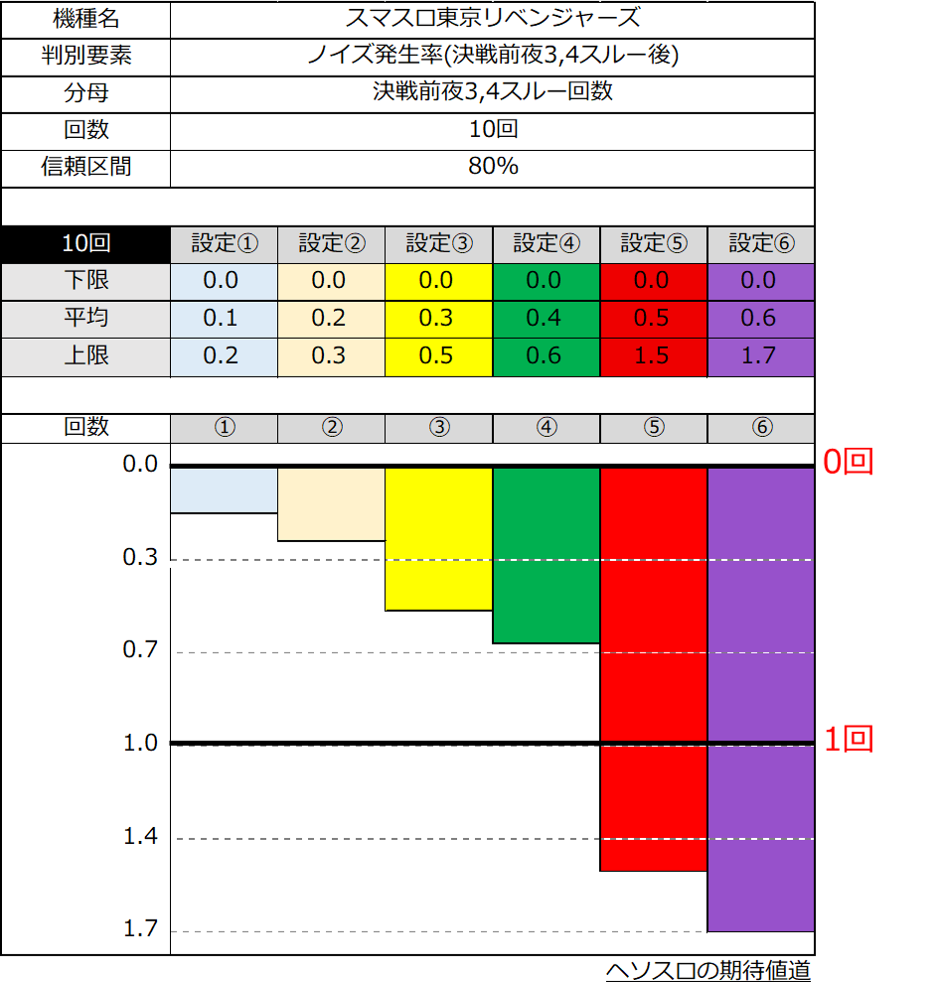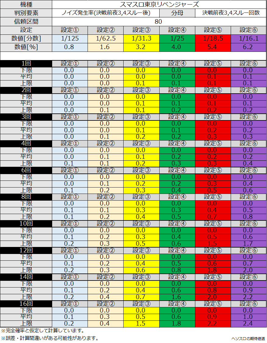 東京リベンジャーズのノイズ発生率の設定差がこちら。