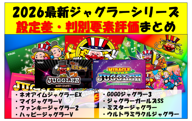 現行ジャグラーシリーズの設定差・判別要素評価についてまとめました。